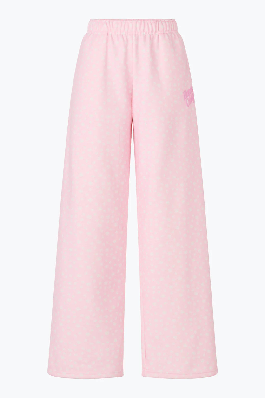 Stay comfortable and stylish in the Angel Bear Core Sweatpants. These pink and white wide-leg sweatpants feature a cinched waistband for a perfect fit and adorable bear embroidery that adds a playful touch. Designed for relaxed days or casual outings, they combine cozy fabric with a trendy silhouette to keep you looking effortlessly cool. Elevate your loungewear collection with these must-have sweatpants.