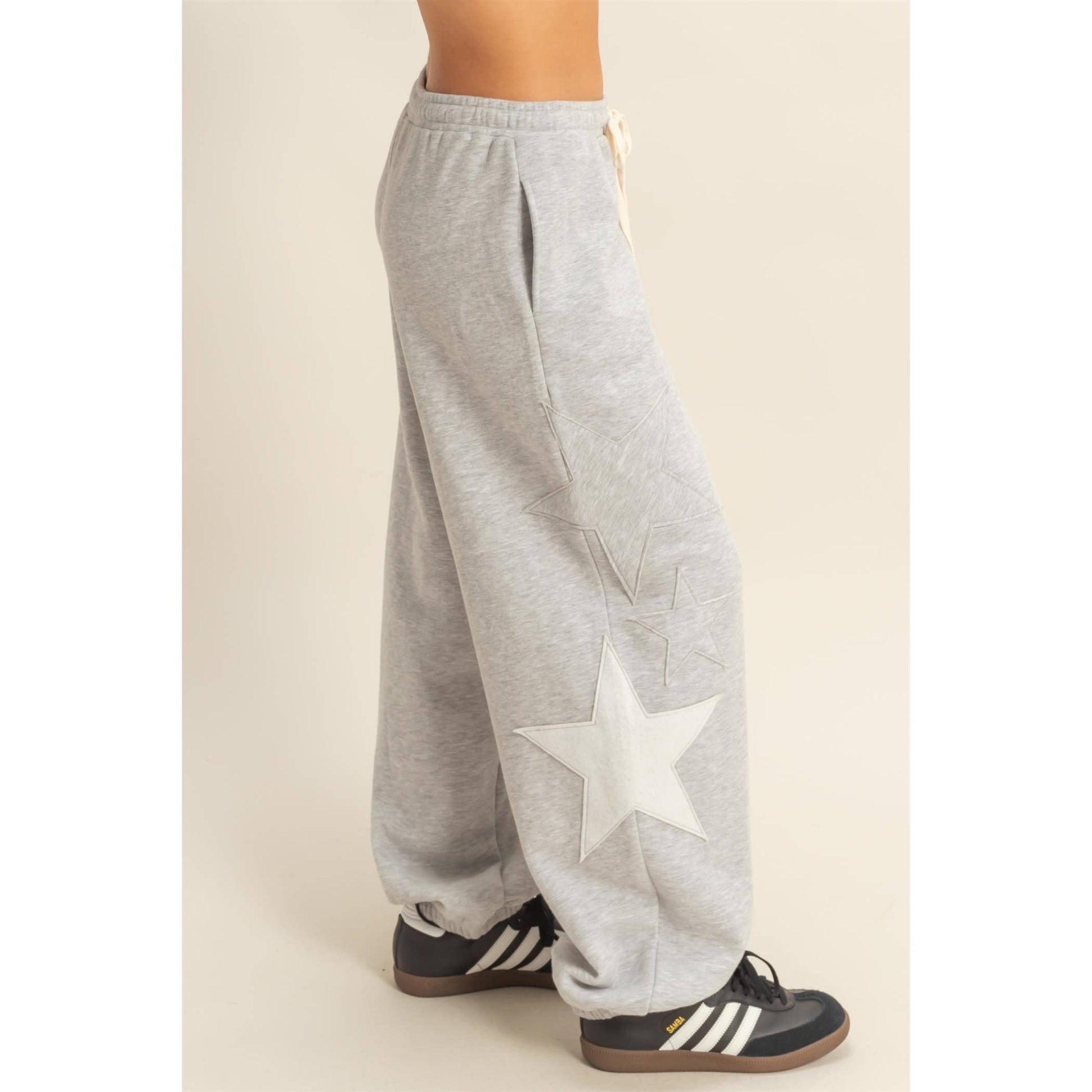 Star Patch Casual Drawstring Jogger Pants in Heather Grey